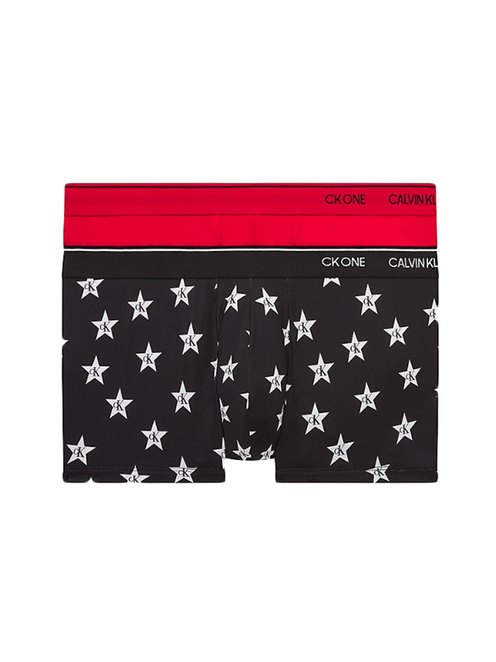 Descrizione: confezione da due boxer uomo boxer in tinta unita e boxer a fantasia a stelle cotton stretch jersey in microfibra, vita bassa banda elastica iconica in vita Calvin Klein